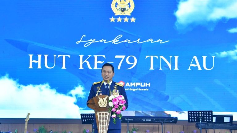 Kepala Staf Angkatan Udara (Kasau) Marsekal TNI M. Tonny Harjono, S.E., M.M., dalam sambutannya menekankan bahwa usia ke-79 bukan hanya angka, melainkan cermin dari kedewasaan organisasi dalam menghadapi tantangan zaman. Menurutnya, kekuatan udara yang tangguh tak hanya dibangun dari teknologi, melainkan juga dari nilai-nilai empati, pengabdian, dan dedikasi yang tertanam dalam setiap insan dirgantara.