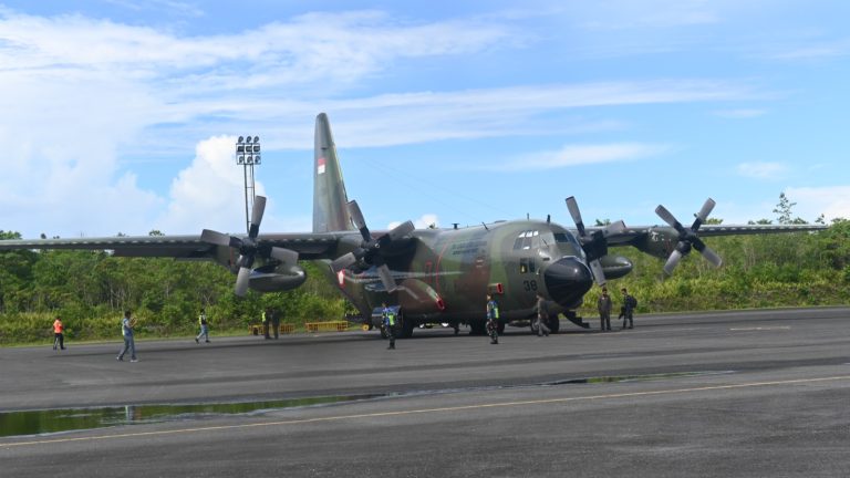 Cakra101, Biak.- Komitmen TNI Angkatan Udara dalam mendukung program prioritas nasional Asta Cita Presiden Republik Indonesia Jenderal TNI (Purn.) Prabowo Subianto kembali diwujudkan melalui pengiriman logistik Program Makan Bergizi Gratis (MBG) ke wilayah timur Indonesia. Pesawat C-130 Hercules dari Skadron Udara 33 yang dipiloti Mayor Pnb Erwin dan Co-Pilot Sigit berhasil mendarat di Lanud Manuhua Biak, Papua, Jumat (18/4/2025), dengan membawa 44 koli perlengkapan MBG seperti rantang, nampan, ompreng, dan sendok.