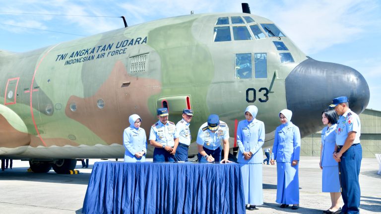 Cakra101, Bandung.- Kepala Staf Angkatan Udara (Kasau) Marsekal TNI M. Tonny Harjono, S.E., M.M. didampingi Ketua Umum PIA Ardhya Garini Ny. Isa M. Tonny Harjono menghadiri acara tradisi Pemberhentian Operasional Pesawat C-130B Retroff Hercules nomor registrasi A-1303, 1304, dan A-1313, di Gedung Serbaguna Nurtanio Depohar 10 Lanud Husein Sastranegara, Bandung, Jawa Barat, Rabu (23/4/2025).