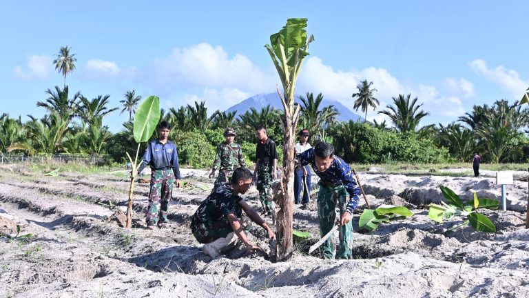 Cakra101, Natuna.- TNI Angkatan Udara melalui Pangkalan TNI AU Raden Sadjad (Lanud RSA) Natuna terus menunjukkan komitmennya dalam memperkuat ketahanan pangan nasional. Salah satunya melalui kegiatan penanaman 200 bibit pisang di area RSA Farm, Lanud RSA, Kabupaten Natuna, Provinsi Kepulauan Riau, Senin (28/4/2025).