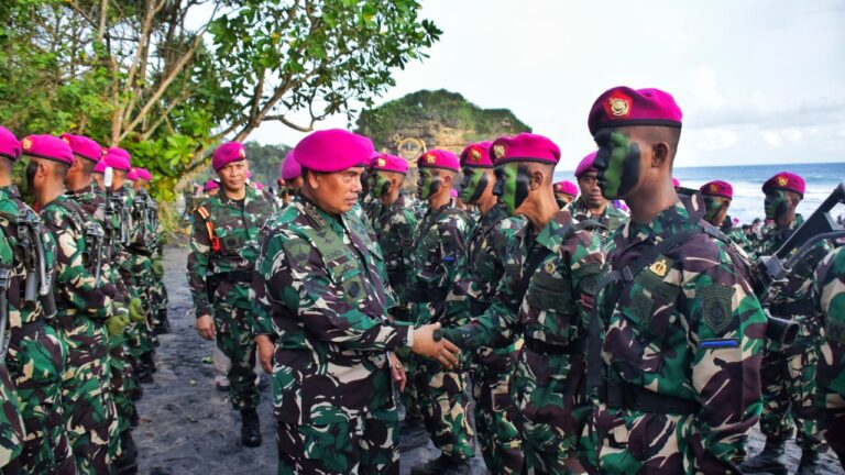 Cakra101, Malang Selatan.- Ditandai dengan upacara pembaretan yang dipimpin langsung Panglima Korps Marinir (Pangkormar) Letnan Jenderal TNI (Mar) Dr. Endi Supardi, S.E., M.M., M.Tr.Opsla., CHRMP., CRMP., sebanyak 527 Prajurit Petarung muda Korps Marinir resmi memakai baret Ungu yang digelar di Pantai Baruna Kondang Iwak, Dusun Sumber Pucung, Desa Tulungrejo, Kecamatan Donomulyo, Kabupaten Malang Selasa (16/9/2025).