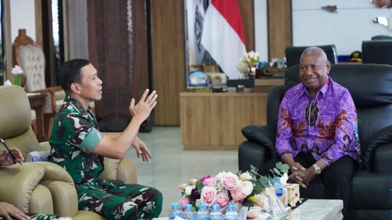 Cakra101, Manokwari.- Sebuah pertemuan penuh kehangatan dan semangat kolaborasi terjalin antara Gubernur Papua Barat, Drs. Dominggus Mandacan dengan Pangdam XVIII/Kasuari, Mayjen TNI Christian Kurnianto Tehuteru, yang datang bersilaturahmi sebagai pejabat baru di Papua Barat. Audiensi ini juga dihadiri oleh beberapa pejabat Kodam, diantaranya: Aster Kasdam, Asintel Kasdam, dan Kapendam XVIII/Kasuari, bertempat di Ruang Kerja Gubernur, Manokwari, Papua Barat, pada Kamis (18/9/2025).