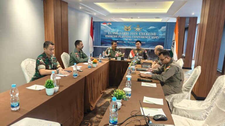 CAKRA101, Medan.- TNI Angkatan Udara (TNI AU) bersama Indian Air Force (IAF) menggelar Exercise Planning Conference (EPC) untuk latihan bersama Elang Shakti Indindo 2025 di Lanud Soewondo, Medan, Sumatera Utara, pada 22–26 September 2025.