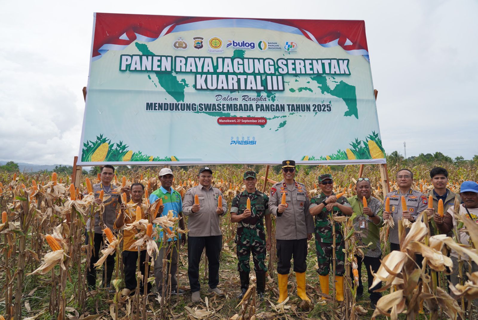 CAKRA101, Manokwari.- Hamparan jagung di Kampung Aimasi, SP 3, Distrik Prafi, Manokwari, Papua Barat, pada Sabtu (27/9/2025) berubah menjadi saksi betapa kolaborasi dapat menghasilkan harapan besar bagi masyarakat. Dalam Panen Raya Jagung Serentak Kuartal III yang digelar oleh Polda Papua Barat, kehadiran berbagai pihak mulai dari TNI, Polri, Pemerintah Daerah, hingga masyarakat, menjadi bukti bahwa kerja sama nyata mampu membawa dampak positif.
