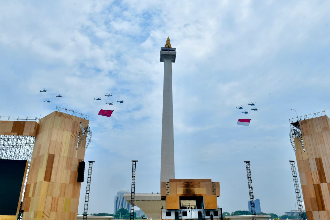 CAKRA101, Jakarta.- Kepala Staf Angkatan Udara (KASAU) Marsekal TNI M. Tonny Harjono, S.E., M.M., mendampingi Panglima TNI Jenderal TNI Agus Subiyanto meninjau gladi kotor persiapan upacara puncak Hari Ulang Tahun (HUT) ke-80 Tentara Nasional Indonesia (TNI) di Monumen Nasional (Monas), Jakarta, Selasa (30/9/2025).