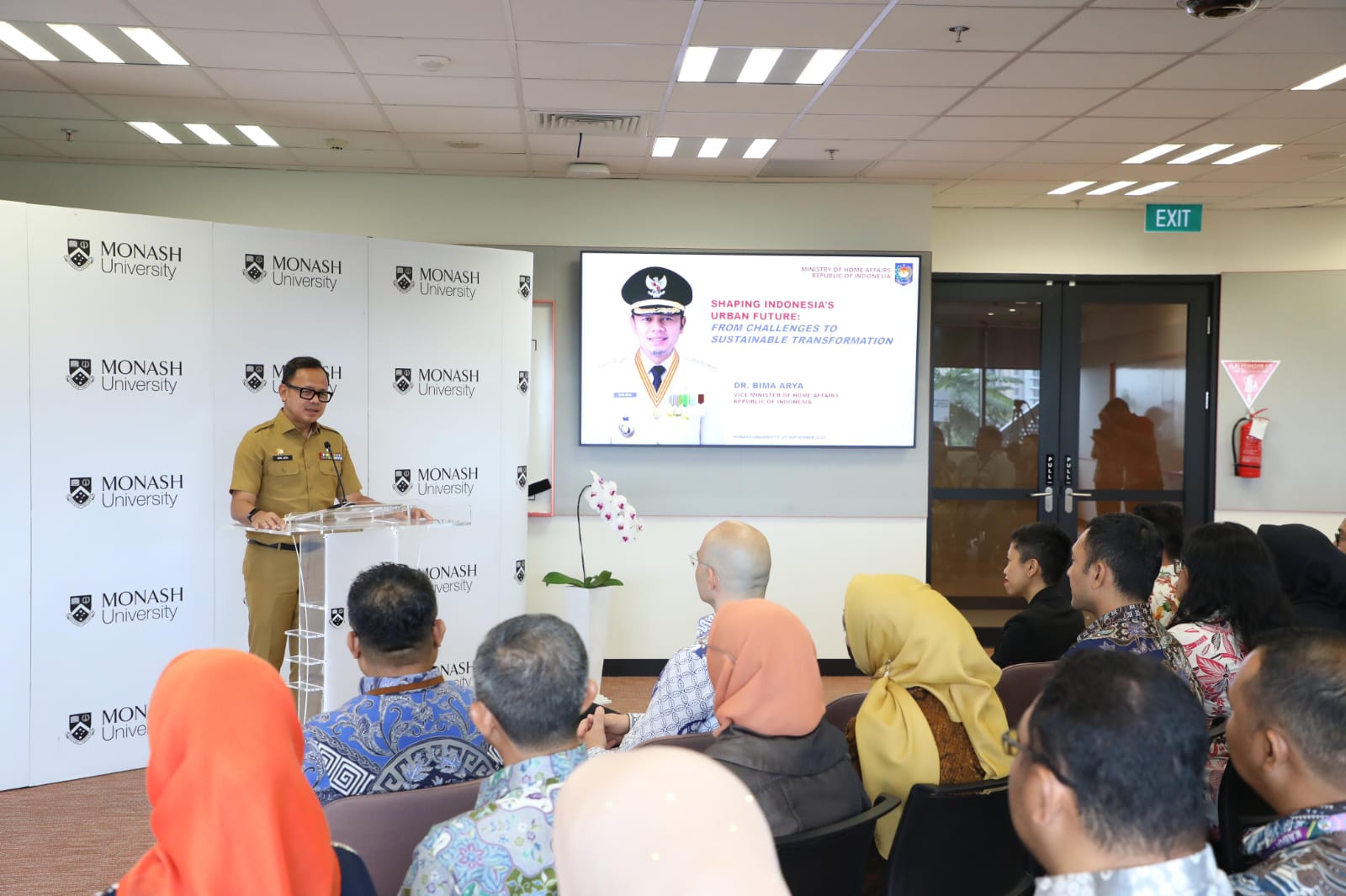 CAKRA101, Tangerang.- Wakil Menteri Dalam Negeri (Wamendagri) Bima Arya Sugiarto meminta pemerintah daerah (Pemda) memahami secara mendalam Rencana Penyelenggaraan Pengelolaan Perkotaan (RP2P) sebagai pedoman pembangunan daerah. Pesan tersebut ia sampaikan saat memberikan Keynote Speech pada The International Urban – Benchmarking Workshop di Monash University Indonesia, Kabupaten Tangerang, Banten, Senin (29/9/2025).