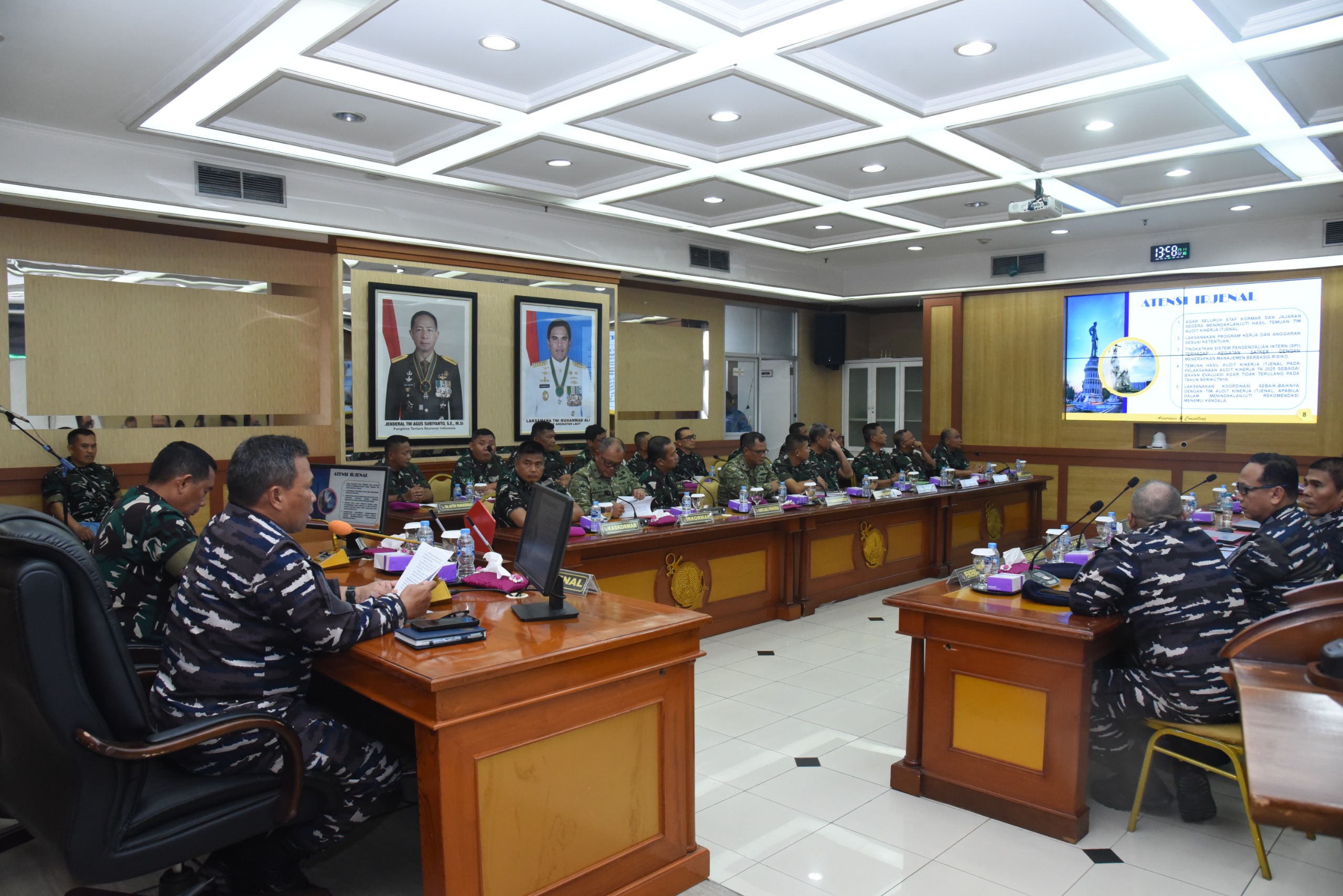 CAKRA101, Jakarta.- Panglima Korps Marinir (Pangkormar) Letnan Jenderal TNI (Mar) Dr. Endi Supardi, S.E., M.M., M.Tr.Opsla., CHRMP., CRMP., pimpin Taklimat Akhir Audit Kinerja Itjenal dilingkungan Korps Marinir bertempat di Ruang Rapat Gedung Agoes Soebekti, Kesatrian Marinir Jenderal Ali Sadikin Mako Kormar, Jakarta Pusat, Rabu (1/10/2025).