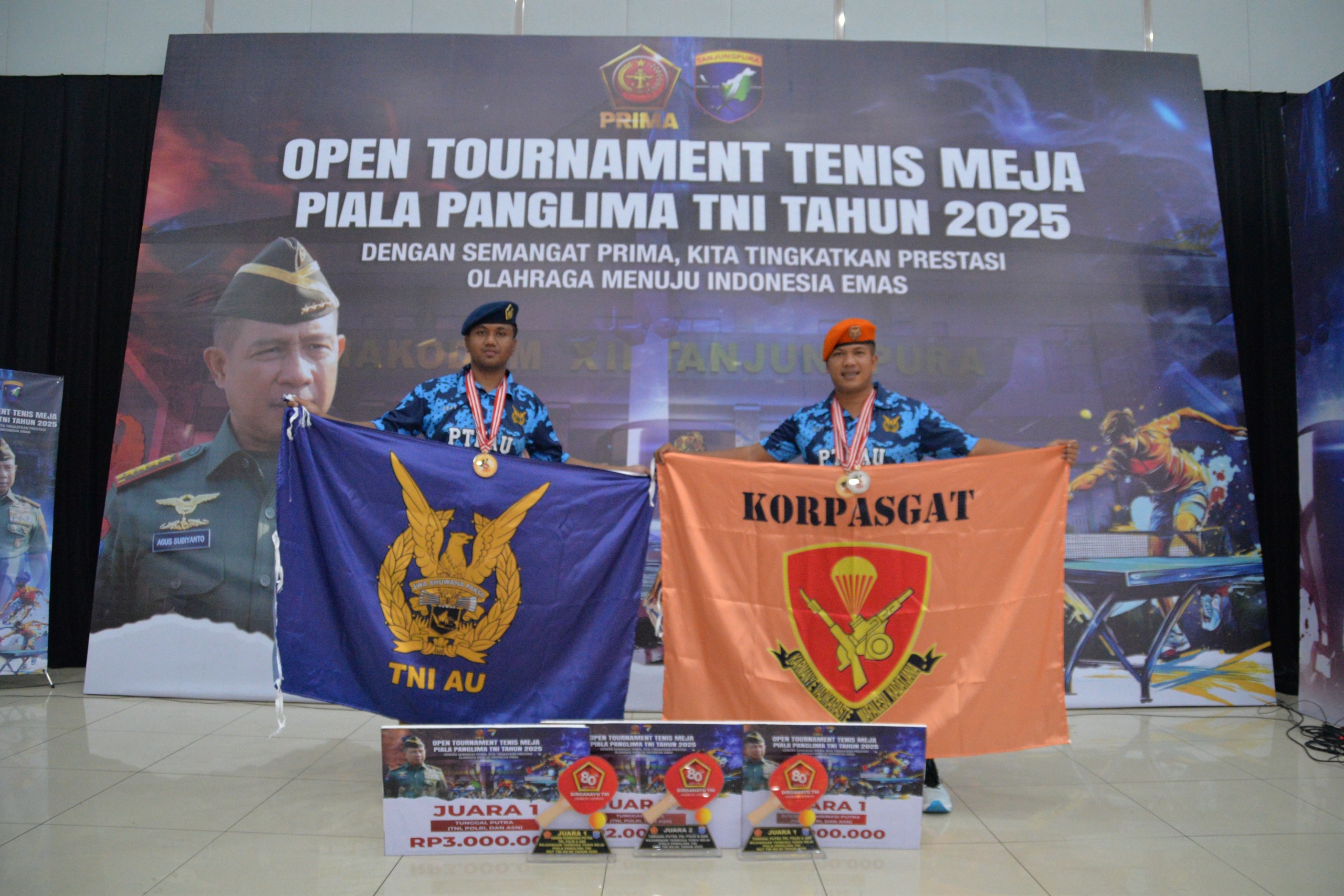CAKRA101, Pontianak.- Atlet tenis meja Korps Pasukan Gerak Cepat (Korpasgat) berhasil menorehkan prestasi membanggakan dengan meraih satu medali emas dan satu medali perak pada Kejuaraan Tenis Meja Piala Panglima TNI Tahun 2025 yang digelar di GOR Makodam XII Tanjungpura, Kalimantan Barat, Minggu (28/9/2025).