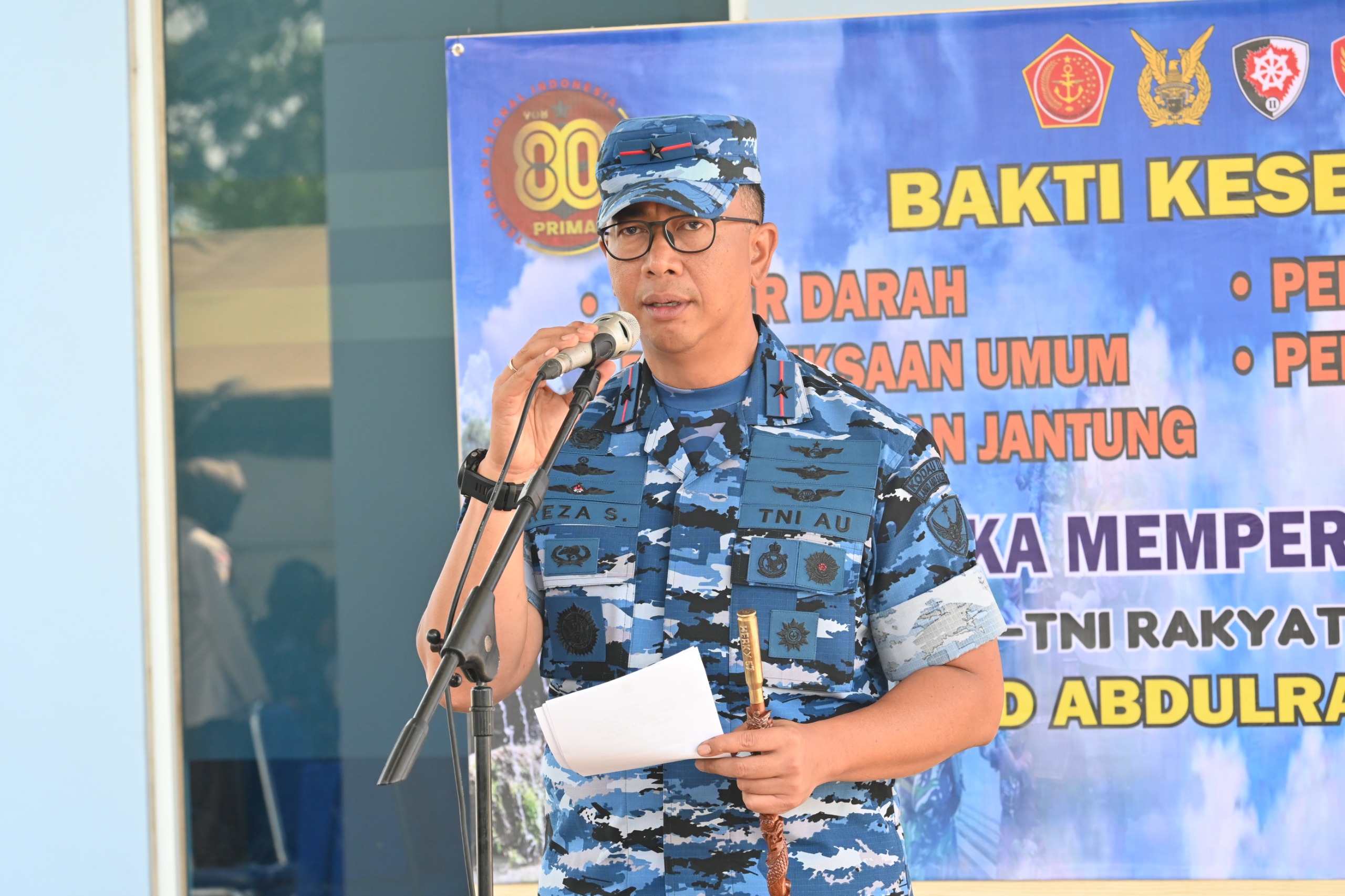 Danlanud Abdulrachman Saleh, Marsma TNI Reza R.R. Sastranegara, S.Sos., M.A.P., MNSS., menegaskan bahwa kegiatan ini merupakan bentuk kepedulian TNI sekaligus implementasi tema HUT ke-80 TNI, “TNI Prima, TNI Rakyat, Indonesia Maju.”