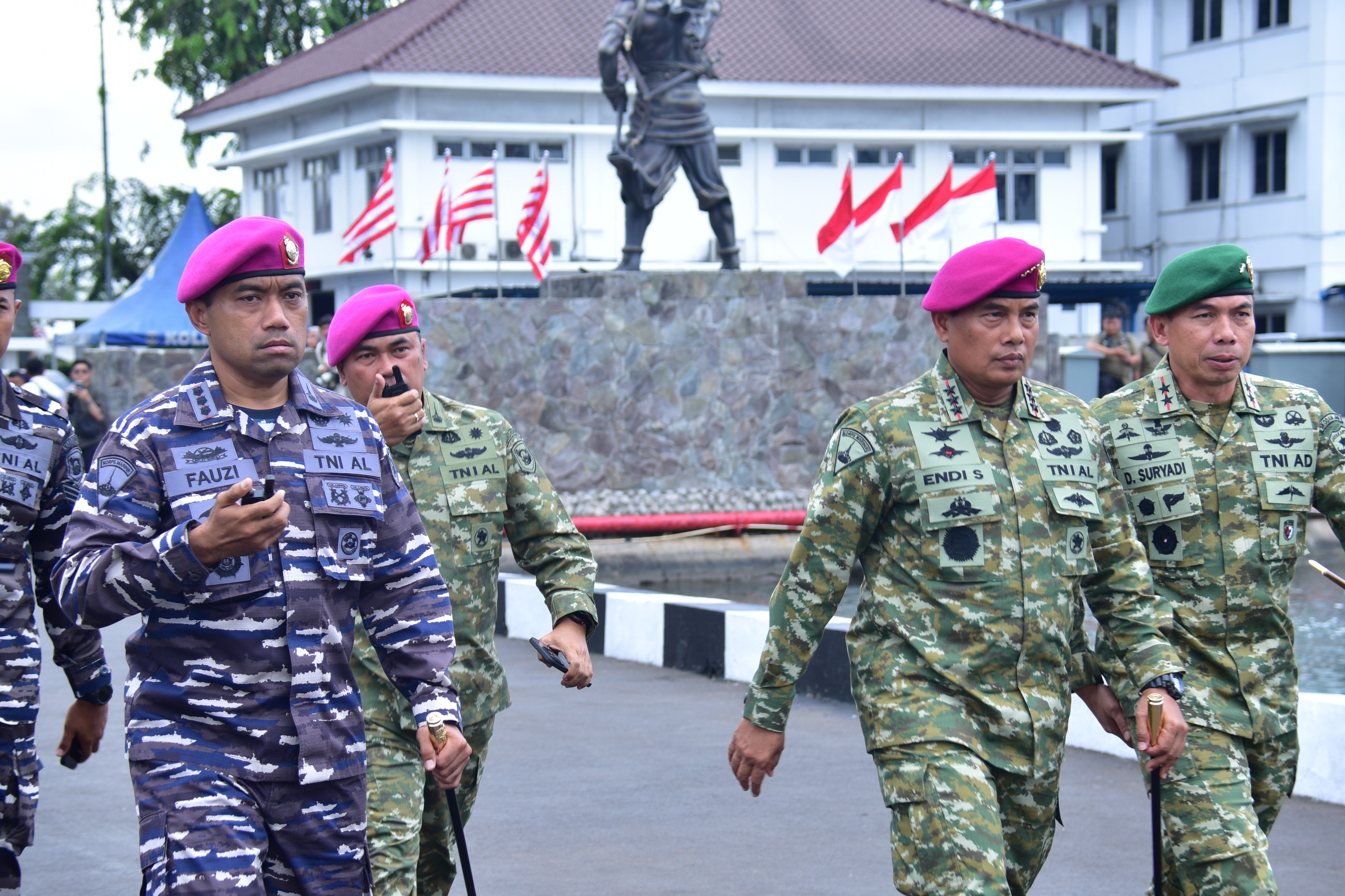 CAKRA101, Jakarta.- Panglima Korps Marinir (Pangkormar) Letnan Jenderal TNI (Mar) Dr. Endi Supardi, S.E., M.M., M.Tr.Opsla., CHRMP.,CRMP., mengikuti Upacara Puncak Penganugerahan Tanda Kehormatan dan Sailing Pass dalam rangka peringatan HUT ke-80 Tentara Nasional Indonesia (TNI) yang digelar di atas Geladak Heli KRI dr. Radjiman Wedyodiningrat-992, Komando Lintas Laut (Kolinlamil) Jakarta Utara, Kamis (2/10/2025).
