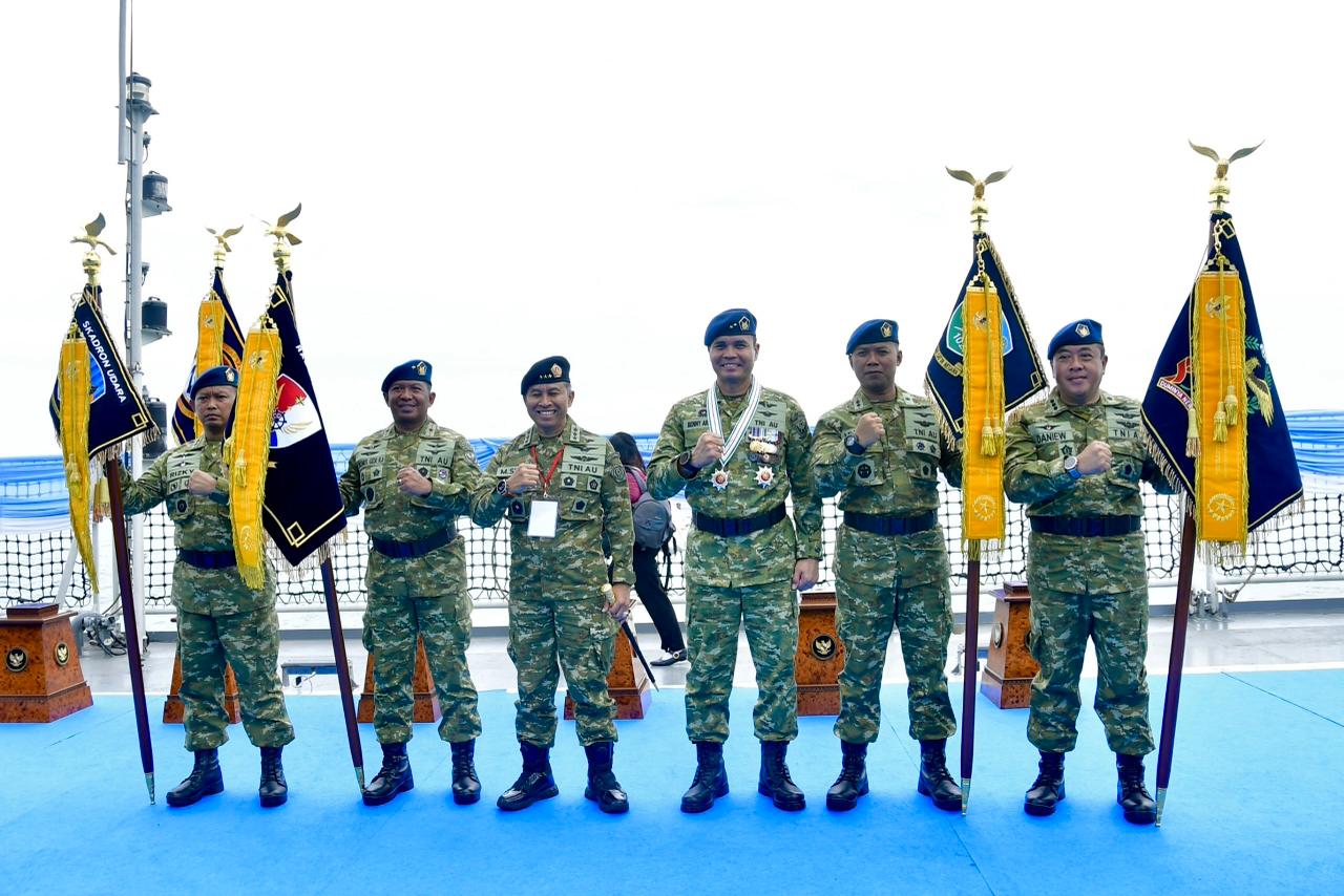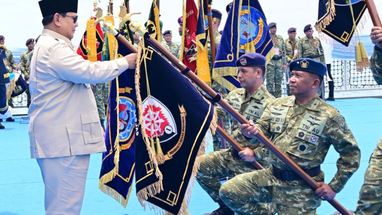 JAKARTA, Cakra101.- Empat satuan TNI Angkatan Udara menerima penganugerahan tanda kehormatan Samkarya Nugraha dari Presiden RI Prabowo Subianto saat menghadiri acara Presidential Inspection di atas KRI dr. Radjiman Wedyodiningrat (RJW-992), Markas Komando Lintas Laut Militer (Kolinlamil), Tanjung Priok, Jakarta Utara, Kamis (2/10/2025).