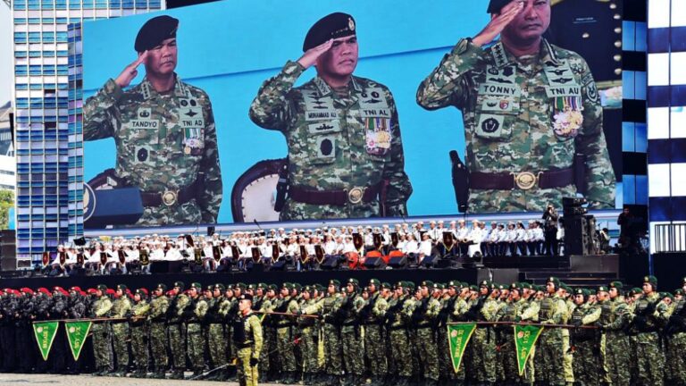 JAKARTA, Cakra101.- Parade Militer untuk memperingati HUT ke-80 TNI di Silang Monas dipimpin dan disaksikan langsung oleh Presiden RI Jenderal TNI (Purn.) Prabowo Subianto selaku Inspektur Upacara. Pada upacara ini, turut mendampingi Presiden diantaranya Panglima TNI, para Kepala Staf Angkatan termasuk Kepala Staf Angkatan Laut (KASAL) Laksamana TNI Dr. Muhammad Ali. Minggu (5/10/2025).