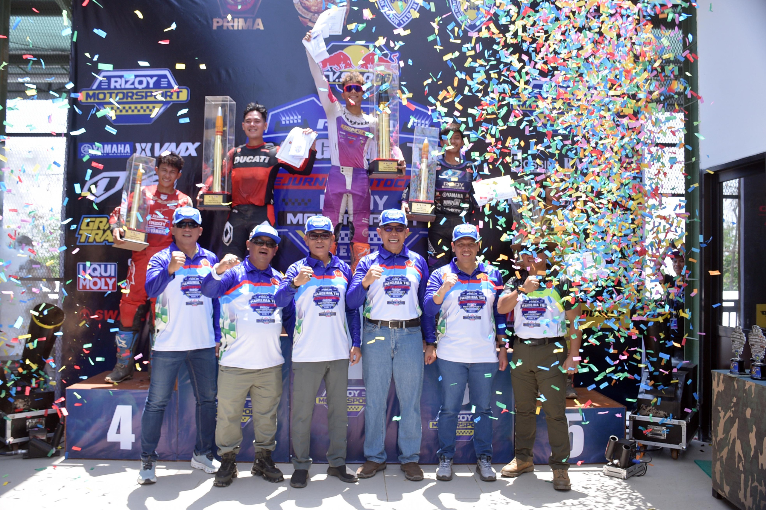 PASURUAN, Cakra101.- Wadan Pasmar 2 Brigjen TNI (Mar) Arinto Beny Sarana, S.E., M.M, menyerahkan piala Panglima TNI Cup kelas MX Open Kejurnas MX Round 7 dan Final Kejurnas GTX Region Jawa yang digelar di Sirkuit Putra Airlangga Rizqy Motorsport Desa Jeruk Purut Kecamatan Gempol Kabupaten Pasuruan Jawa Timur. Sabtu (4/10/2025)