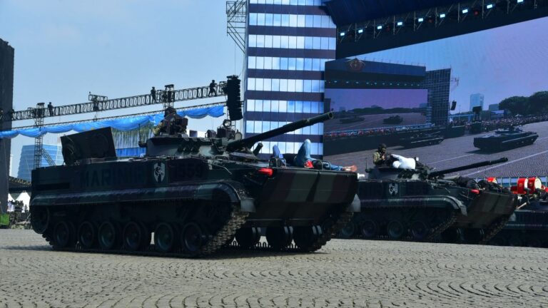 JAKARTA, Cakra101.- Aksi Prajurit Korps Marinir TNI Angkatan Laut kembali menjadi sorotan dalam demonstrasi ketangkasan pada puncak peringatan HUT ke-80 TNI di Lapangan Silang Monas, Jakarta Pusat, Minggu (5/10/2025). Di hadapan Presiden Republik Indonesia Bapak Prabowo Subianto selaku Inspektur Upacara, para prajurit Baret Ungu menampilkan kemampuan luar biasa yang menggambarkan kesiapsiagaan dan kehandalan Marinir sebagai pasukan amfibi yang tangguh dan profesional.