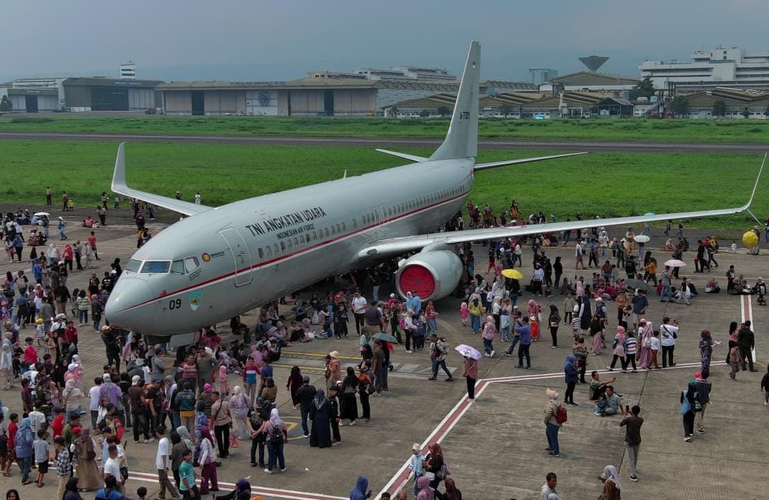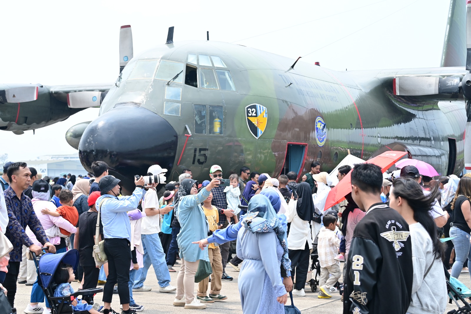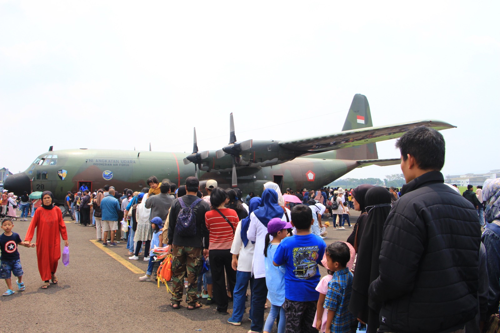 Sejak pagi, masyarakat dari berbagai kalangan datang dengan antusias untuk melihat dari dekat berbagai pesawat TNI Angkatan Udara yang tengah berada di Lanud Husein Sastranegara. Anak-anak, pelajar, hingga keluarga tampak antusias berfoto di sekitar pesawat angkut TNI AU yang digunakan dalam demo udara peringatan HUT ke-80 TNI di Jakarta.