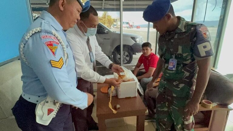 BANDA ACEH, Cakra101.-. Upaya penyelundupan narkoba jenis sabu-sabu kembali berhasil digagalkan oleh personel Lanud Sultan Iskandar Muda bersama petugas Aviation Security (Avsec) Angkasa Pura Indonesia II Bandara Sultan Iskandar Muda (SIM) yang bertugas di X-Ray Gudang Kargo Bandar Udara Internasional Sultan Iskandar Muda, Kecamatan Blang Bintang, Kabupaten Aceh Besar, Sabtu (4/10/2025).
