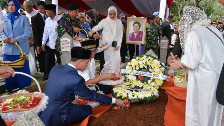 JAKARTA, Cakra101.- Wakil Presiden (Wapres) Gibran Rakabuming memimpin upacara pemakaman almarhumah Karlinah Umar Wirahadikusumah, istri dari Wakil Presiden Keempat Republik Indonesia (1983–1988) Umar Wirahadikusumah, di Taman Makam Pahlawan (TMP) Nasional Kalibata, Jakarta Selatan, Senin (6/10/2025).