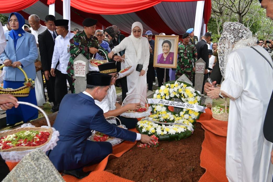 Sebagai bentuk penghormatan terakhir atas nama negara, bangsa, dan Tentara Nasional Indonesia (TNI), Wapres meletakkan karangan bunga di atas pusara almarhumah. Dalam prosesi tersebut, Wapres juga menyerahkan bendera Merah Putih kepada putri almarhumah, Nila Shanti. Berlangsung dengan khidmat dan penuh penghargaan, upacara selesai sekitar pukul 14.25 WIB.