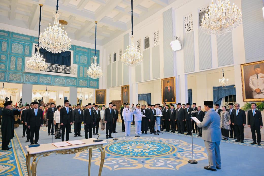 Usai pembacaan Keppres, Kepala Negara pun mengambil sumpah jabatan para pejabat yang dilantik.
