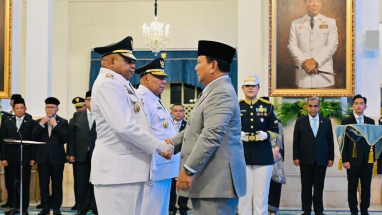 JAKARTA, Cakra101.- Presiden Prabowo Subianto melantik Gubernur dan Wakil Gubernur Papua masa jabatan tahun 2025-2030, Rabu (8/10/2025). Dalam acara pelantikan yang digelar di Istana Negara, Jakarta, Matius Fakhiri dan Aryoko Alberto Ferdinand Rumaropen dilantik sebagai Gubernur dan Wakil Gubernur Papua.