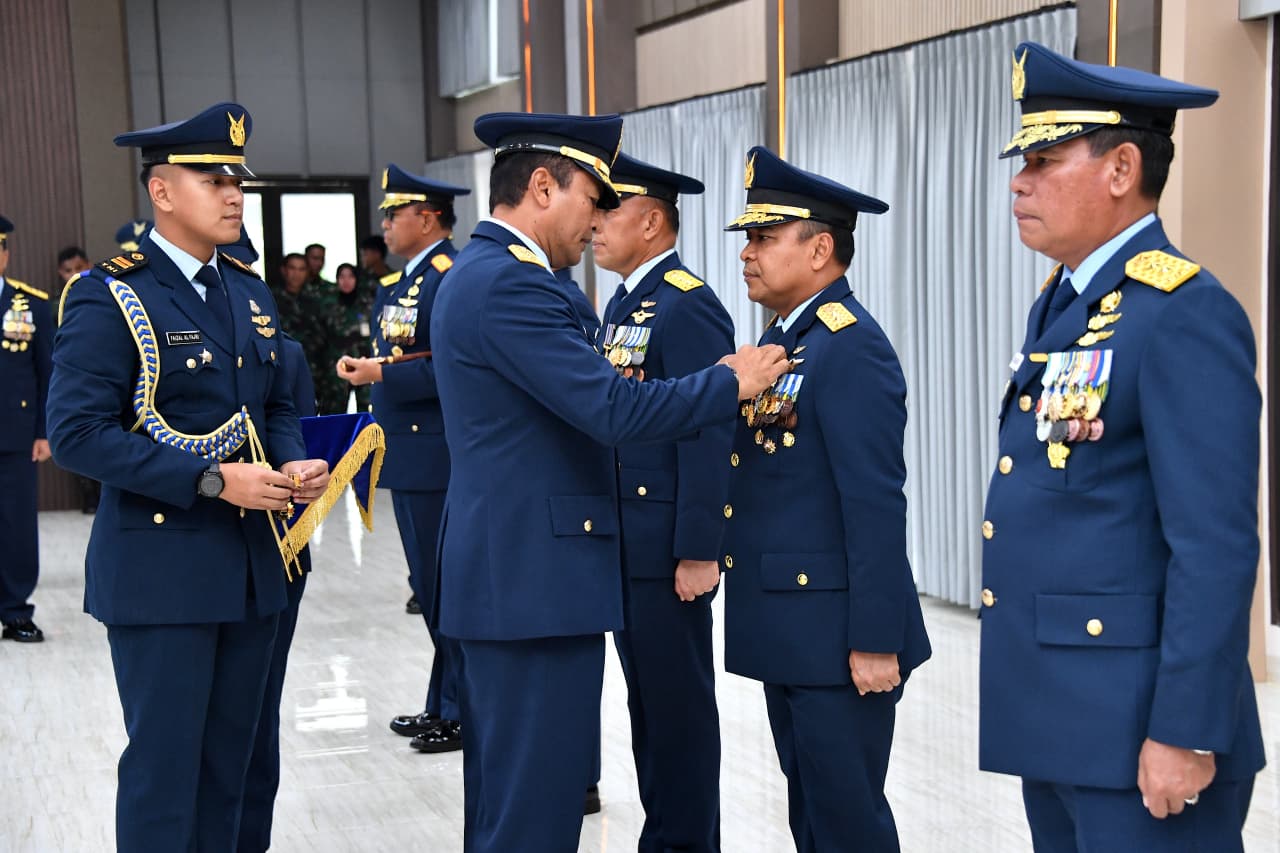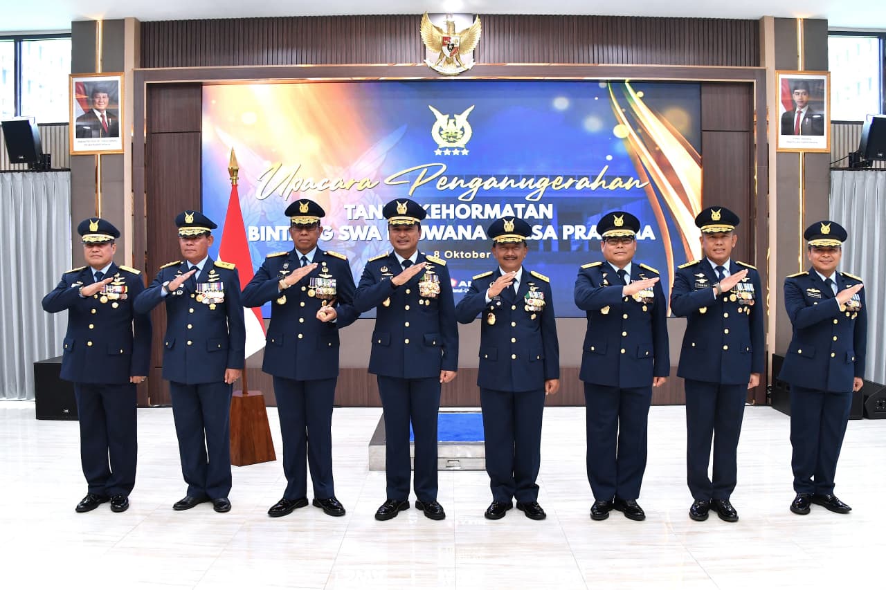 JAKARTA, Cakra101.- Kepala Staf Angkatan Udara (KASAU) Marsekal TNI M. Tonny Harjono, S.E., M.M. memimpin upacara Penganugerahan Tanda Kehormatan Bintang Swa Bhuana Paksa Pratama kepada enam Perwira Tinggi (Pati) TNI Angkatan Udara di Ruang Serbaguna Denmabesau, Cilangkap, Jakarta Timur, Rabu (8/10/2025).