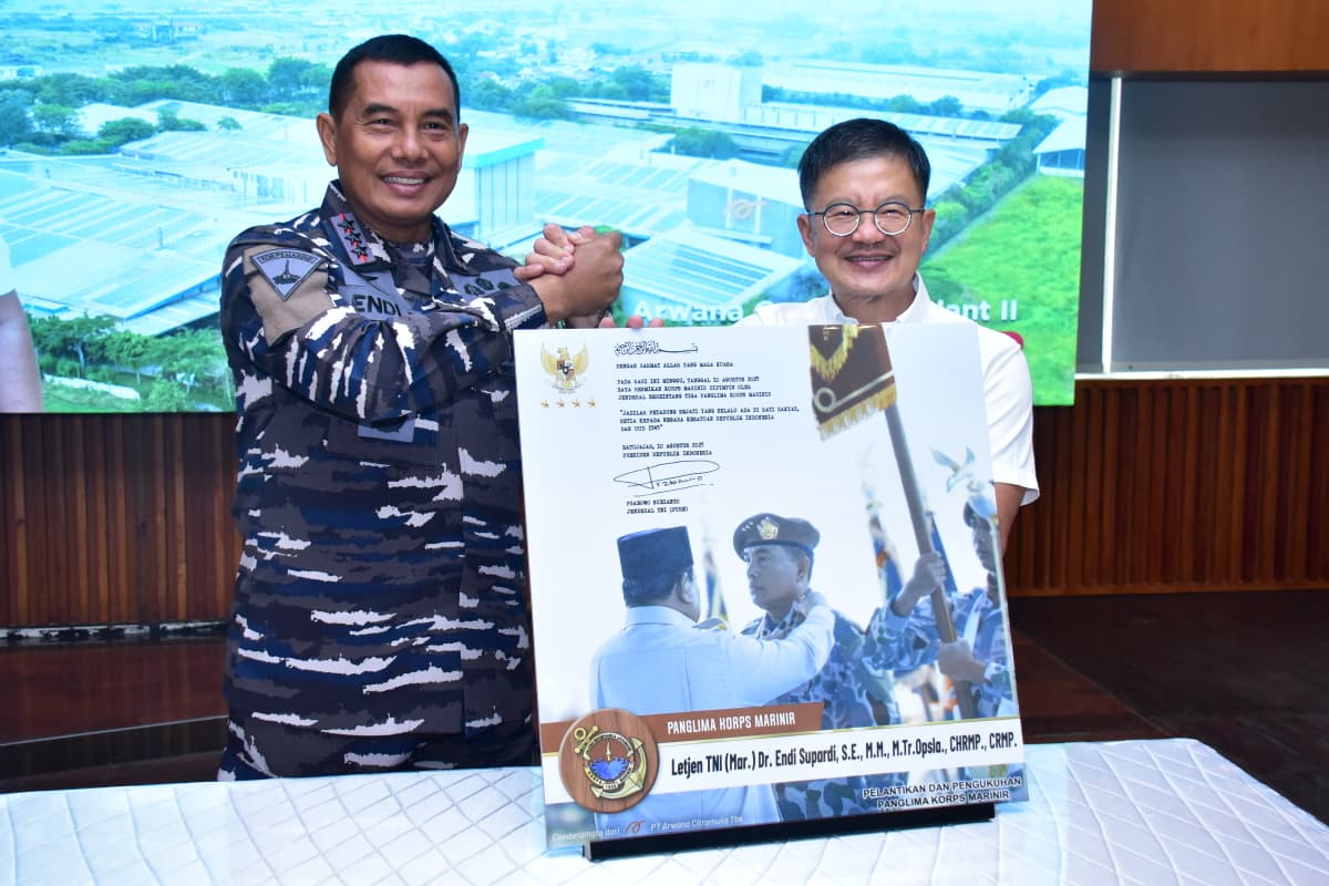 SERANG, Cakra101.- Panglima Korps Marinir (Pangkormar) Letjen TNI (Mar) Dr. Endi Supardi, S.E., M.M., M.Tr.Opsla., CHRMP., CRMP., melaksanakan kunjungan kerja ke PT Arwana Citramulia Tbk dalam rangka mempererat kerja sama dan meningkatkan wawasan mengenai pengelolaan industri nasional. kegiatan tersebut dilaksanakan di Gedung Plant 2 PT. Arwana Citramulia Tbk, Desa Kibin, kec. Kibin, Kab. Serang Banten. Rabu (8/10/2025).