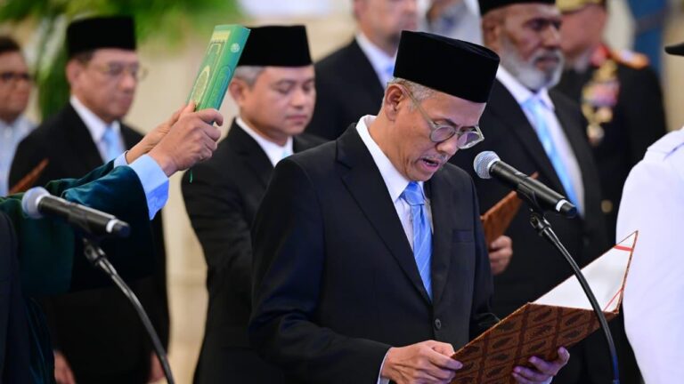 Dengan sikap tegap dan penuh khidmat, para Dewan Komisioner LPS mengucapkan sumpah jabatan yang didampingi oleh pejabat rohani dan disaksikan langsung oleh Presiden Prabowo.