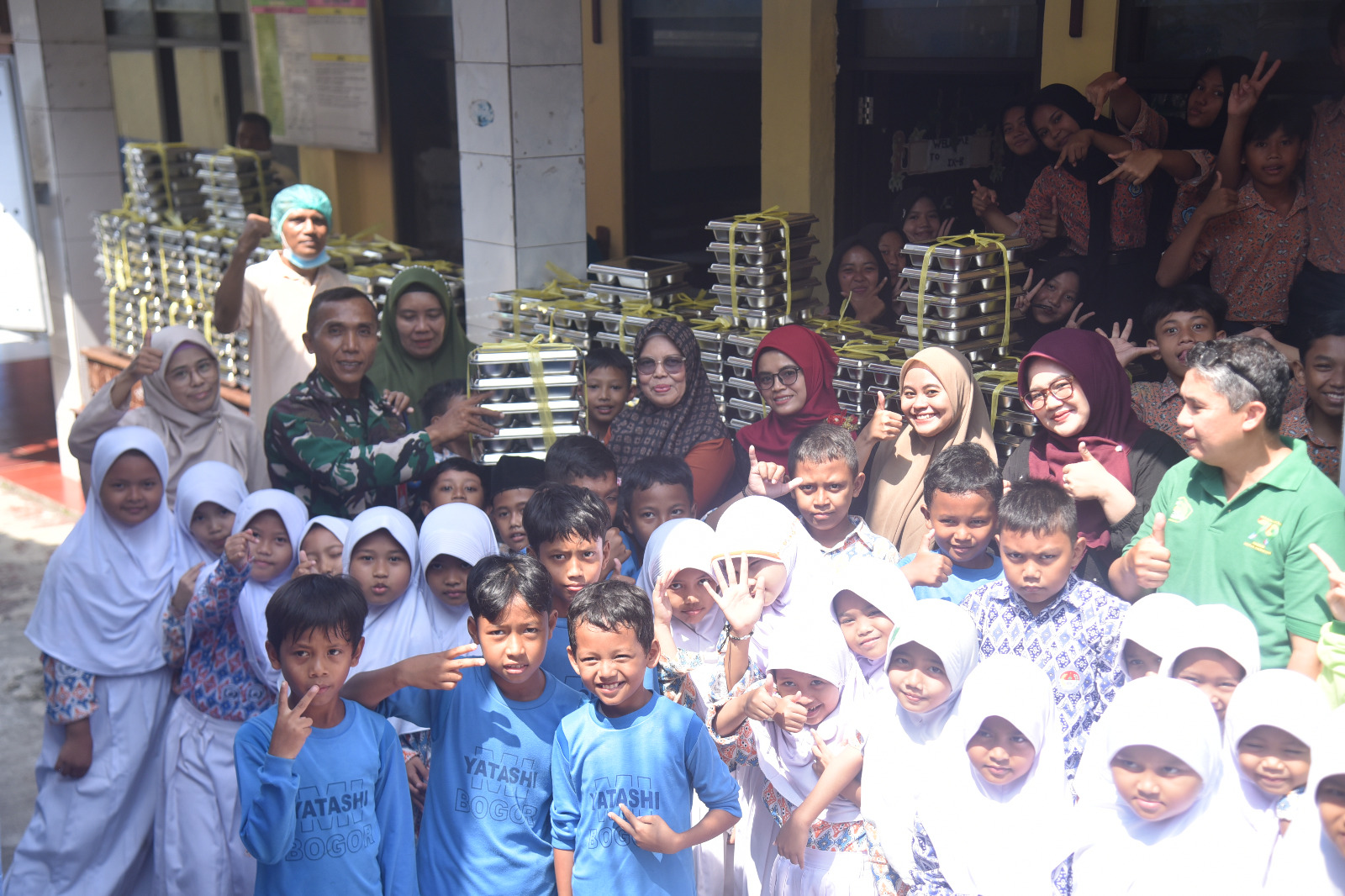 Salah satu penerima manfaat adalah sekolah-sekolah di bawah naungan Pondok Pesantren Tarbiyatusshibyan, Kayu Manis, Bogor, yang mencakup jenjang KB, RA, MI, MTs, dan MA. Para siswa tapak antusias menerima paket makanan bergizi yang dibagikan.