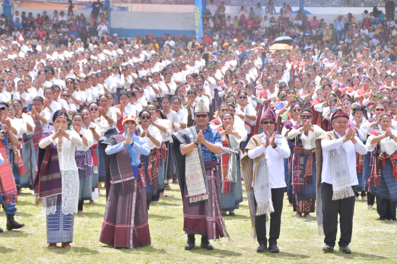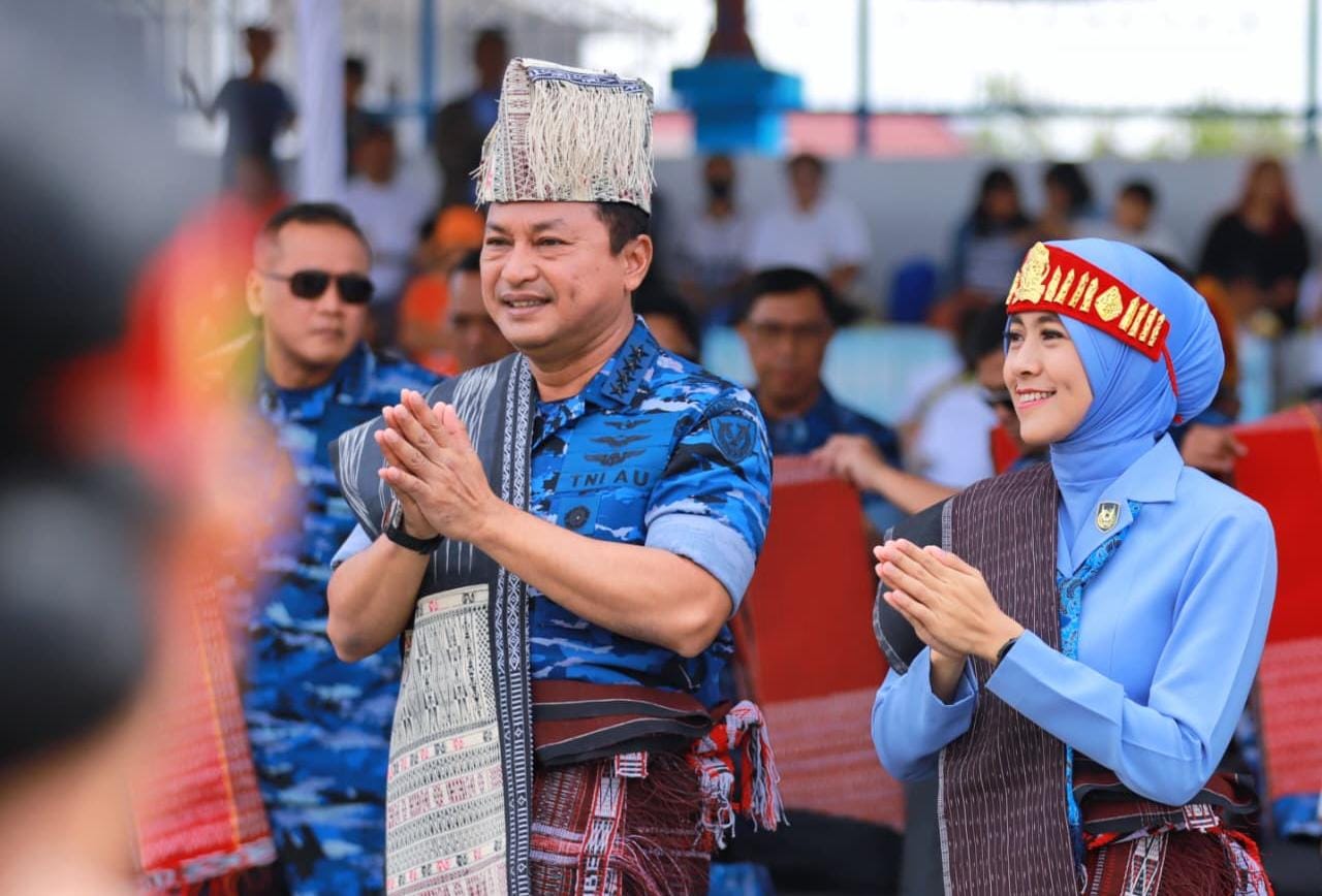 Sebagai bentuk penghormatan adat, Kasau beserta Ketua Umum PIA Ardhya Garini Ny. Isa M. Tonny Harjono menerima seperangkat pakaian adat Batak tertinggi, di antaranya hohopo, sape, bulang, sortali, piso, hajut, tungkot, dan patung bue. Prosesi adat tersebut dipimpin oleh Ketua Adat Tapanuli Utara, Bertho Pasaribu.