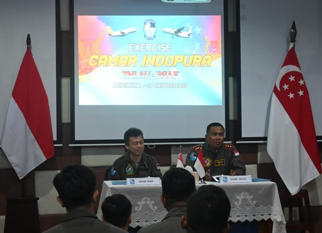 PONTIANAK, Cakra101.com – TNI Angkatan Udara dan Republic of Singapore Air Force (RSAF) resmi mengakhiri Latihan Bersama (Latma) Camar Indopura 2025. Penutupan latihan ditandai dengan upacara yang dipimpin Danwing Udara 5 Kolonel Pnb H. L. P. Ambarita, M.M.S., dan Commander Transport Group RSAF Kolonel (Col) Ng Teck Chye di Lanud Supadio, Pontianak, Kamis (9/10/2025).