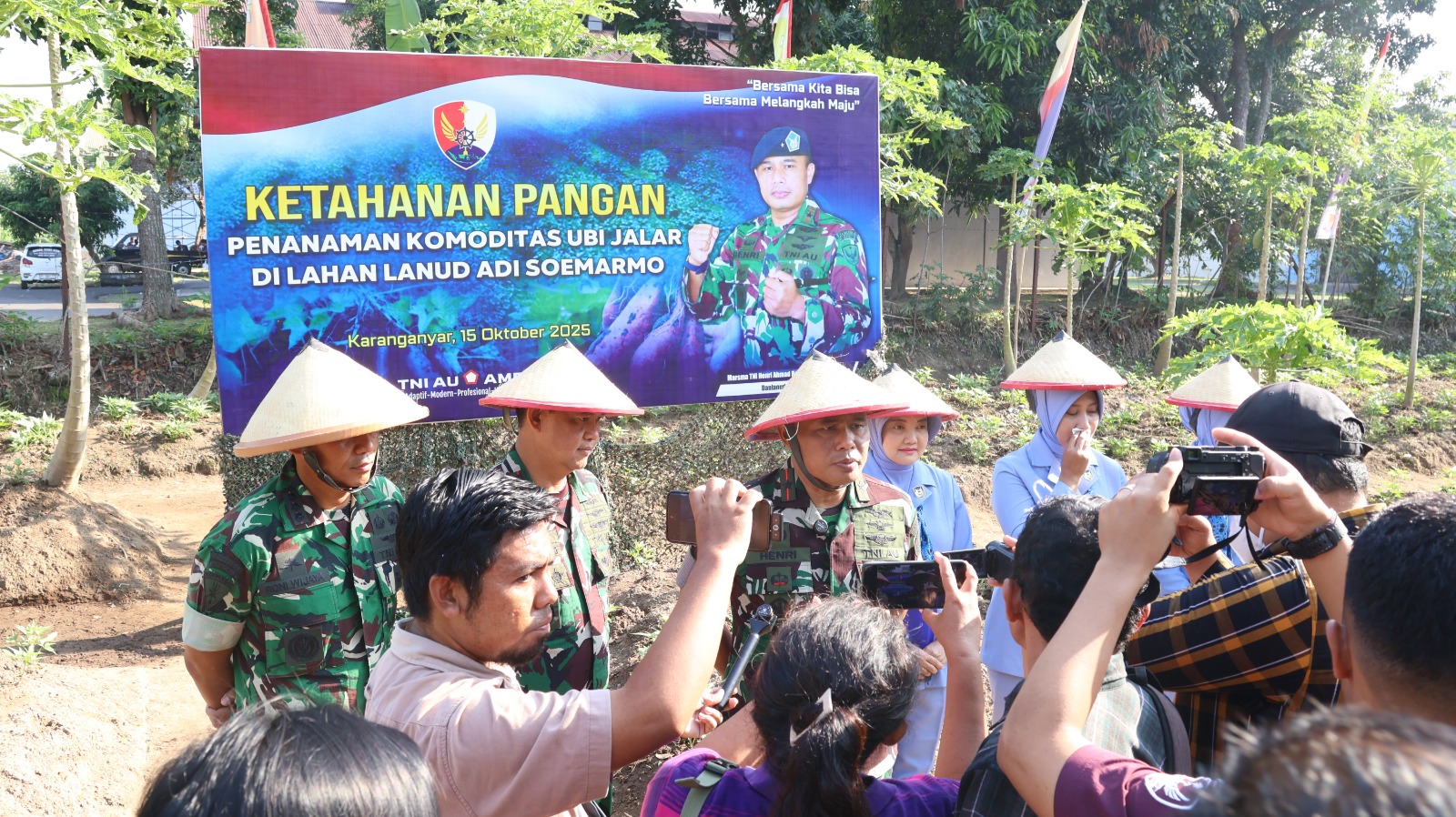 BOYOLALI, Cakra101.com – Komandan Lanud (Danlanud) Adi Soemarmo Marsma TNI Henri Ahmad Badawi, S.M., M.M., M.Han., melaksanakan penanaman ubi jalar di lahan milik Lanud Adi Soemarmo, Rabu (15/10/2025).
