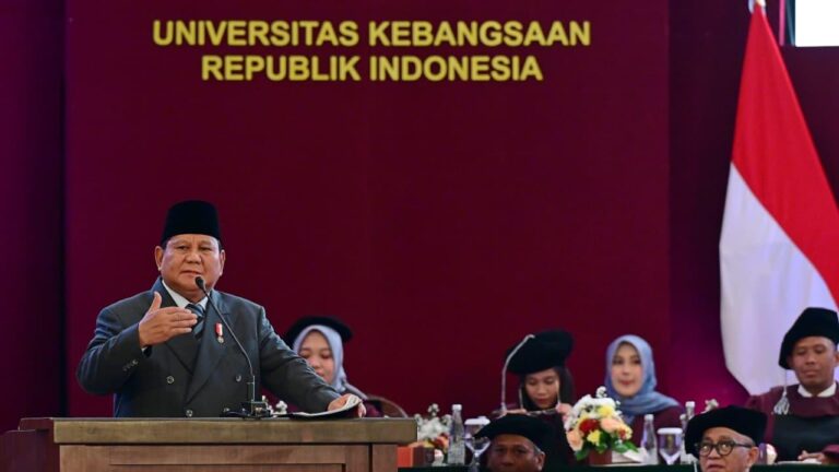 BANDUNG, Cakra101.com – Presiden Prabowo Subianto menghadiri Sidang Senat Terbuka dalam rangka Pengukuhan Mahasiswa Baru Sarjana dan Magister Tahun Ajaran 2025/2026, serta Wisuda Sarjana sekaligus Dies Natalis Universitas Kebangsaan Republik Indonesia (UKRI) Tahun 2025. Acara berlangsung dengan khidmat di Trans Convention Centre, Kota Bandung, Provinsi Jawa Barat, pada Sabtu (18/10/2025).