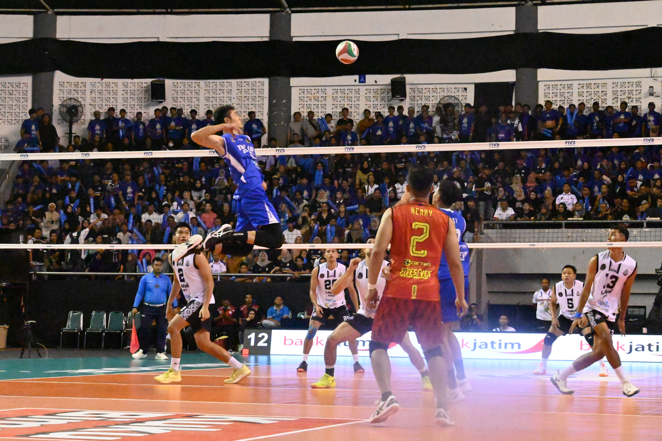 TNI AU Electric bangkit dengan membalas di dua set berikutnya melalui pola serangan cepat dan pertahanan rapat yang sulit ditembus. Bank Jatim sempat menyamakan kedudukan lewat kemenangan telak di set keempat, namun TNI AU Electric kembali menunjukkan mental juara di set penentuan dan menutup laga dengan skor 15-11. Kemenangan ini memastikan TNI AU Electric putri lolos ke Grand Final bersama Petrokimia Gresik.