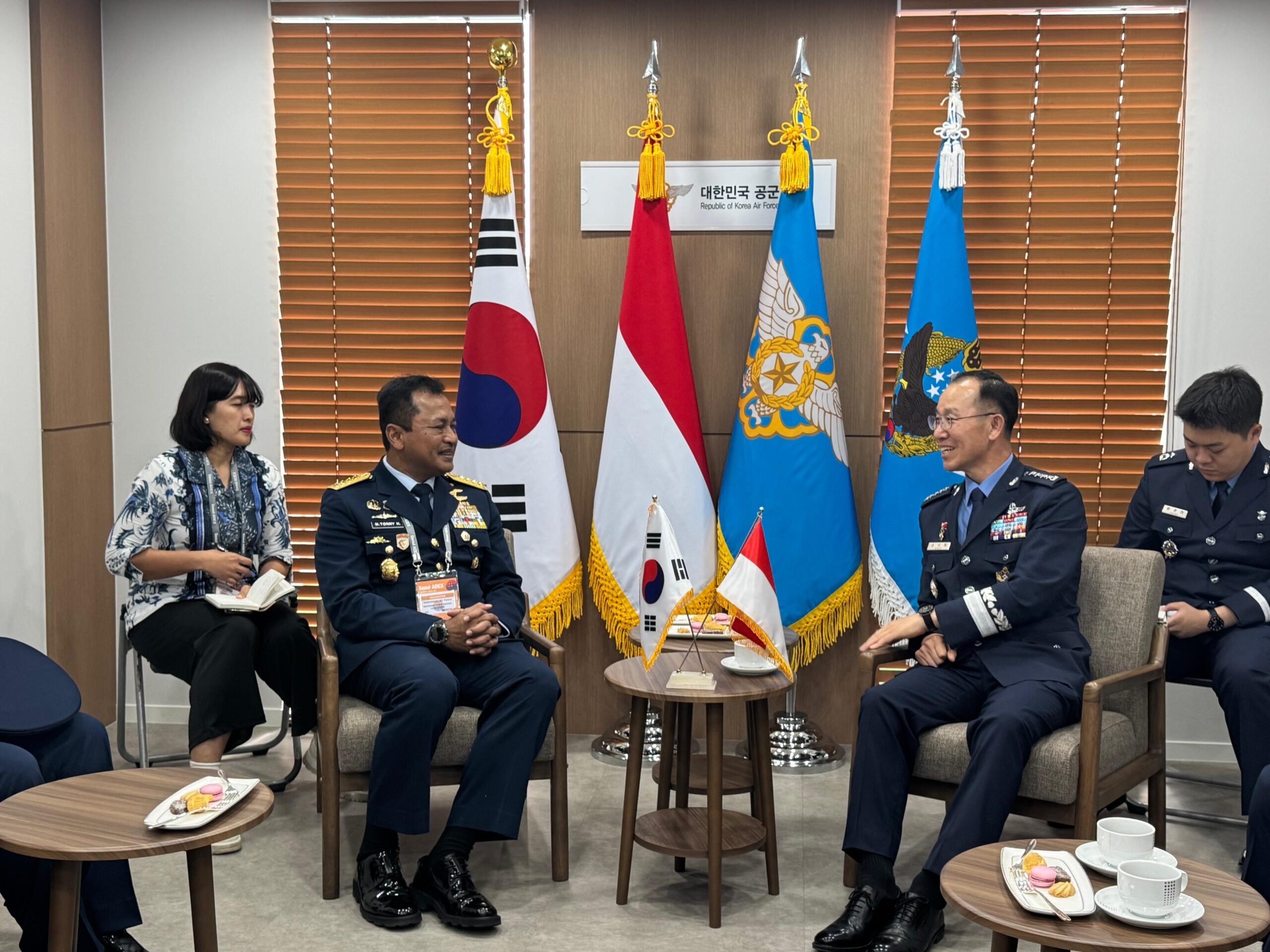 SEOUL, Cakra101.com – Kepala Staf Angkatan Udara (KASAU) Marsekal TNI M. Tonny Harjono, S.E., M.M., melakukan pertemuan bilateral dengan Chief of Staff Republic of Korea Air Force (ROKAF) General Son Sug Rag di Goyang, Korea Selatan, Senin (20/10/2025).