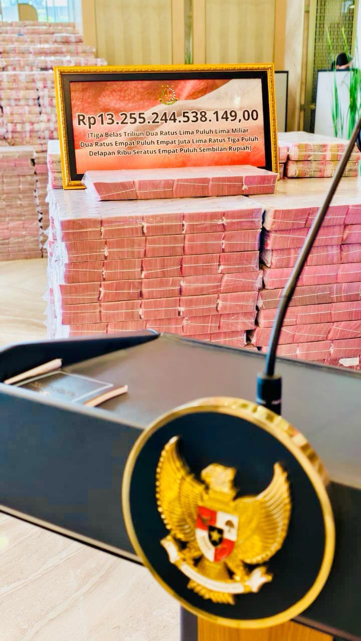 JAKARTA, Cakra101.com – Presiden Prabowo Subianto menyampaikan apresiasi kepada jajaran Kejaksaan Agung atas keberhasilannya dalam menyerahkan uang pengganti kerugian negara sebesar Rp13.255.244.538.149,00 triliun dalam perkara tindak pidana korupsi pemberian fasilitas ekspor crude palm oil (CPO) dan turunannya.