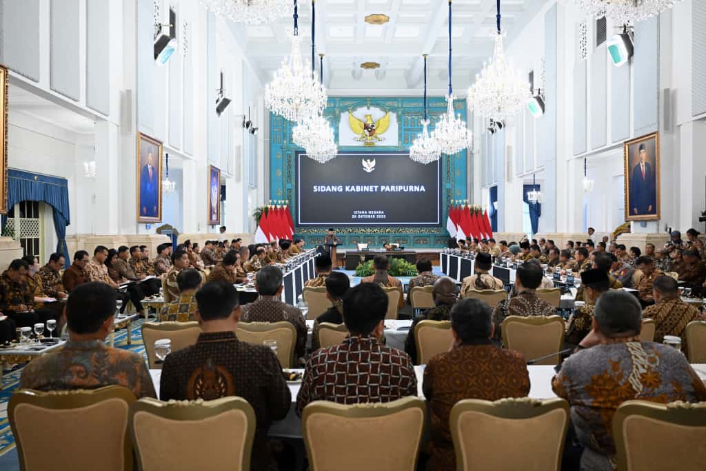 Dalam sambutannya, Presiden Prabowo mengajak seluruh jajaran untuk menengok kembali perjalanan pemerintahan yang telah dilalui dan menguatkan semangat pengabdian kepada bangsa dan rakyat. “Kita bersyukur kita dapat hadir melaksanakan Sidang Kabinet Paripurna pada tanggal 20 Oktober 2025, yaitu tepat satu tahun saya dilantik, disumpah, di MPR kita sebagai Presiden Republik Indonesia dan karena itu saya kira saudara-saudara tepatlah kita berkumpul untuk kita melihat apa yang sudah kita kerjakan satu tahun ini,” ujar Presiden Prabowo membuka arahannya.