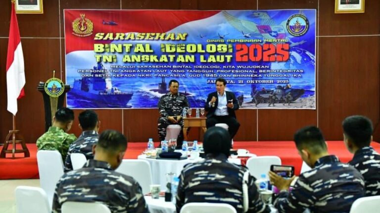 JAKARTA, Cakra101.com – Dalam rangka memperkuat pembinaan mental ideologi Pancasila, Dinas Pembinaan Mental Angkatan Laut (Disbintalal) menyelenggarakan Sarasehan Bintal Ideologi Tahun 2025 yang berlangsung di Gedung Pierre Andries Tandean, Mabes TNI, Cilangkap, Jakarta Timur, Selasa (21/10/2025).