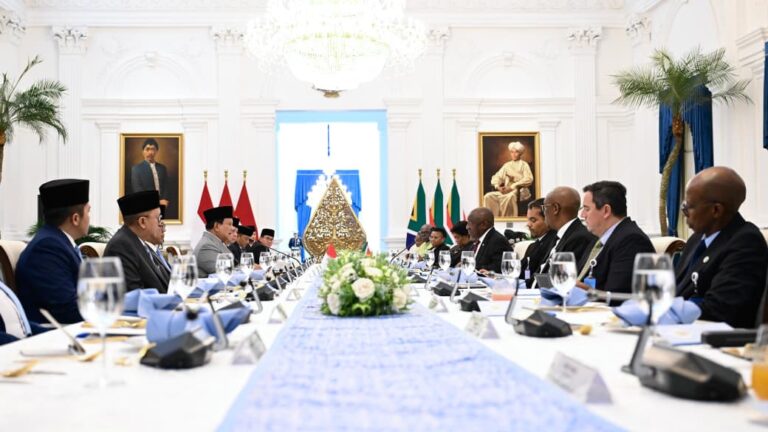 JAKARTA, Cakra101.com – Presiden Republik Indonesia Prabowo Subianto menegaskan komitmen Indonesia untuk terus mempererat hubungan dan memperkuat kerja sama dengan Afrika Selatan, terutama sebagai sesama negara selatan yang besar. Dalam pengantarnya saat working lunch kunjungan kenegaraan Presiden Afrika Selatan di Ruang Oval, Istana Merdeka, Jakarta, Rabu, 22 Oktober 2025, Kepala Negara menyampaikan kekagumannya terhadap perjuangan Nelson Mandela yang menjadi simbol kekuatan dan keteguhan dalam memperjuangkan kebebasan serta demokrasi.