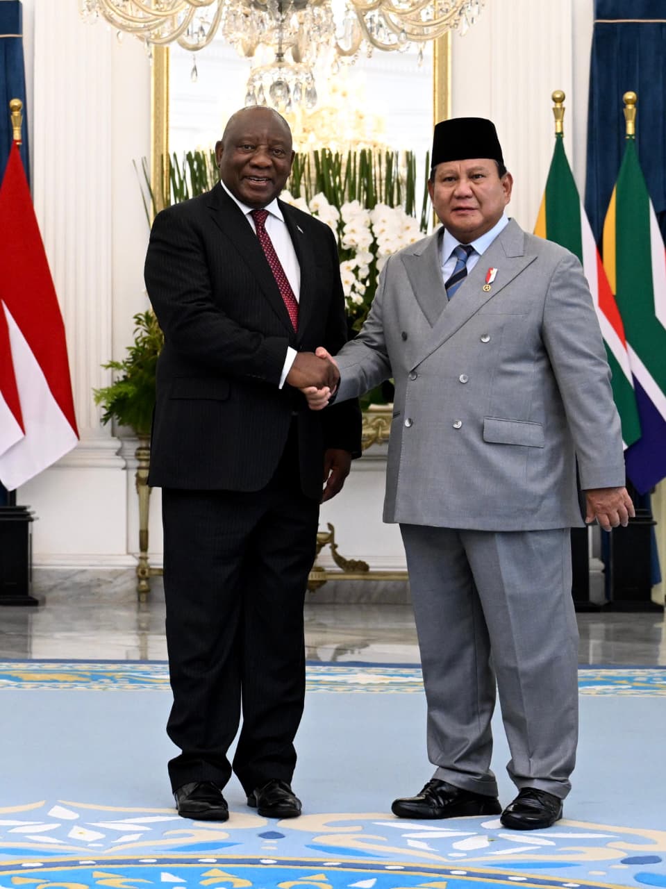 Dalam suasana hangat dan bersahabat, Presiden Prabowo juga menyampaikan harapan agar kunjungan Presiden Ramaphosa dapat menjadi awal dari hubungan yang semakin kuat antara kedua negara di berbagai bidang termasuk kerja sama dalam forum global seperti BRICS.