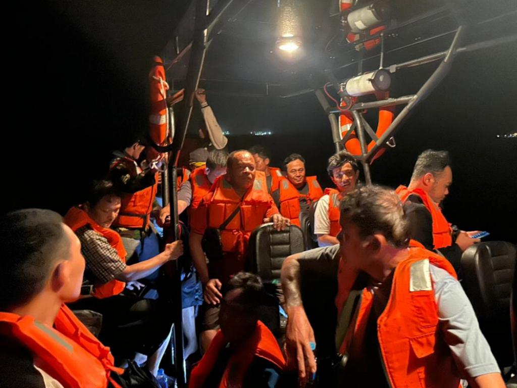 Menerima laporan darurat tersebut, unsur patroli Lanal Tanjung Balai Karimun segera dikerahkan menuju lokasi kejadian. Pada pukul 23.32 WIB, tim patroli berhasil tiba di perairan Kanipan dan melaksanakan proses evakuasi dengan aman. Seluruh 19 awak kapal berhasil diselamatkan dan dibawa menuju Mako Lanal Tanjung Balai Karimun untuk mendapatkan pemeriksaan serta penanganan lebih lanjut.