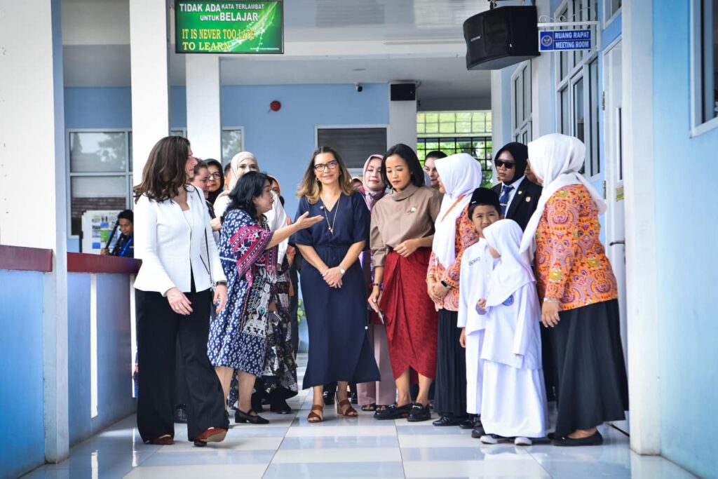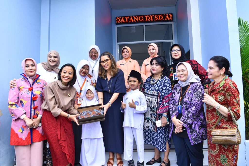 Usai meninjau dapur sehat, Ibu Janja Lula da Silva melanjutkan kunjungan ke SD Angkasa 5 Lanud Halim Perdanakusuma, salah satu sekolah penerima manfaat program MBG. Ibu Negara Brasil menyaksikan proses pendistribusian makanan sehat dan berinteraksi langsung dengan para siswa penerima program.