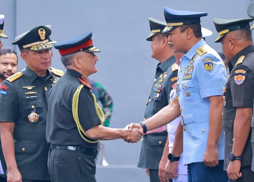 JAKARTA, Cakra101.com – Kepala Staf Angkatan Udara (KASAU) Marsekal TNI M. Tonny Harjono, S.E., M.M., mendampingi Panglima TNI Jenderal TNI Agus Subiyanto menerima kunjungan Panglima Angkatan Bersenjata India, Jenderal Anil Chauhan di Halaman Subden Merdeka Barat, Jakarta, Selasa (28/10/2025).