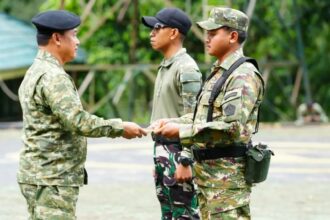BAUBAU, Cakra101.com – Panglima TNI Jenderal TNI Agus Subiyanto mendampingi Menteri Pertahanan RI Sjafrie Sjamsoeddin dalam kunjungan kerja ke Batalyon Infanteri Teritorial Pembangunan (Yonif TP) 823/Raja Wakaaka di Kota Baubau, Sulawesi Tenggara, Selasa (4/11/2025). Kunjungan tersebut bertujuan untuk meninjau progres pembangunan pangkalan baru sekaligus memberikan pengarahan langsung kepada para prajurit di satuan tersebut.