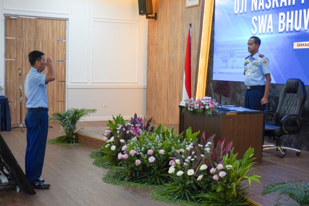 JAKARTA, Cakra101.com – Komandan Komando Pembinaan Doktrin, Pendidikan, dan Latihan TNI Angkatan Udara (Dankodiklatau) Marsdya TNI Dr. T.B.H. Age Wiraksono, S.I.P., M.A., memimpin pelaksanaan Uji Naskah I Revisi Doktrin TNI AU Swa Bhuwana Paksa yang digelar di Gedung Soemitro Sekkau, Halim Perdanakusuma, Jakarta Timur, Senin (10/11/2025).