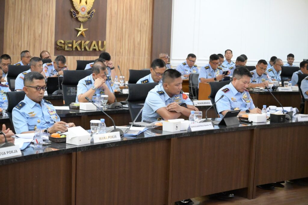 Pada kesempatan tersebut, Wakil Komandan Kodiklatau selaku Ketua Tim Pokja, Marsda TNI Benny Arfan, M.MP., MMDS., MSS., memaparkan hasil kajian Tim Uji Naskah I yang kemudian dilanjutkan dengan sesi diskusi dan tanggapan dari para peserta, termasuk kelompok kerja (Pokja) terkait.