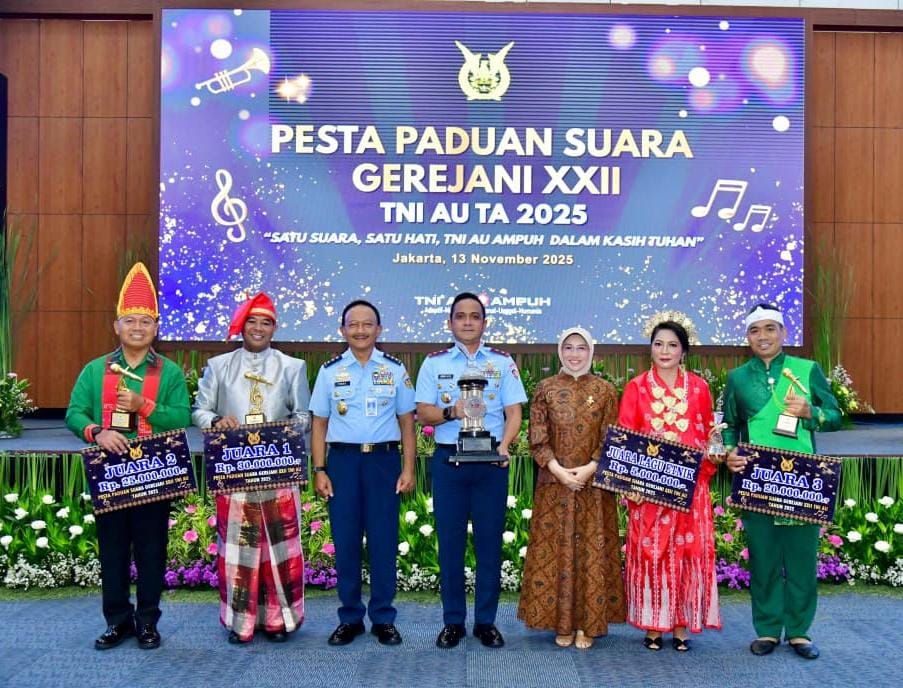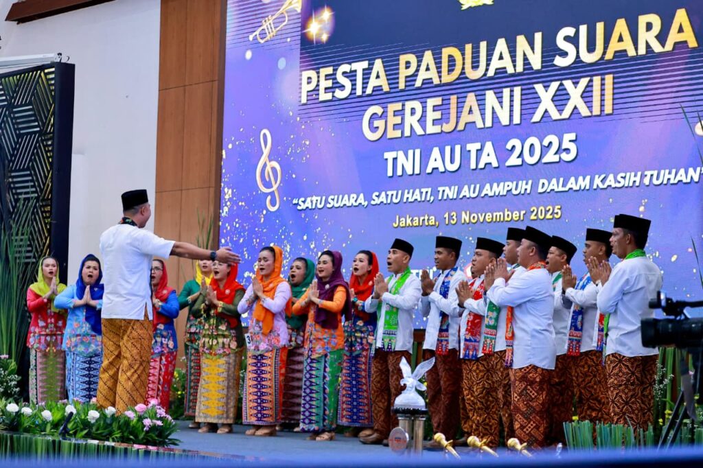 JAKARTA, Cakra101.com – Sebanyak 10 kontingen dari jajaran Kotama TNI Angkatan Udara beradu kemampuan vokal dalam ajang Pesta Paduan Suara Gerejani (Pesparani) XXII TNI AU Tahun 2025 di Mabesau Cilangkap, Jakarta Timur, Kamis (13/11/2025).