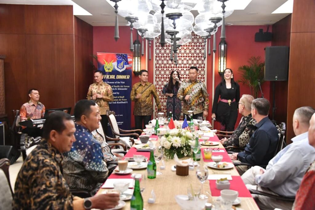 Pada kesempatan tersebut, para tamu delegasi PACAF disuguhi berbagai makanan khas tradisional Indonesia dan diiringi alunan lagu-lagu Nusantara. General Schneider menyampaikan kekagumannya atas keanekaragaman budaya, kuliner, dan bahasa di Indonesia, yang menurutnya mencerminkan kekayaan nilai dan tradisi bangsa Indonesia serta menjadi fondasi penting dalam memperkuat persahabatan antara kedua negara.
