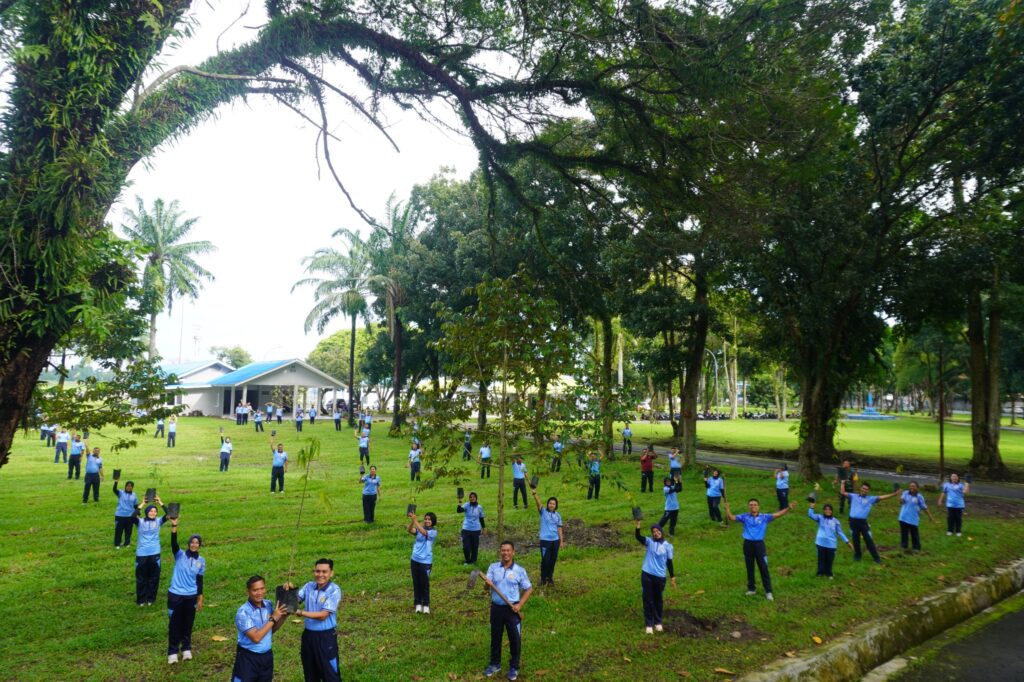 Adapun pohon yang ditanam meliputi mangga, durian, alpukat, dan glodokan, yang dinilai mampu menghasilkan komoditas pangan sekaligus memberikan manfaat lingkungan.