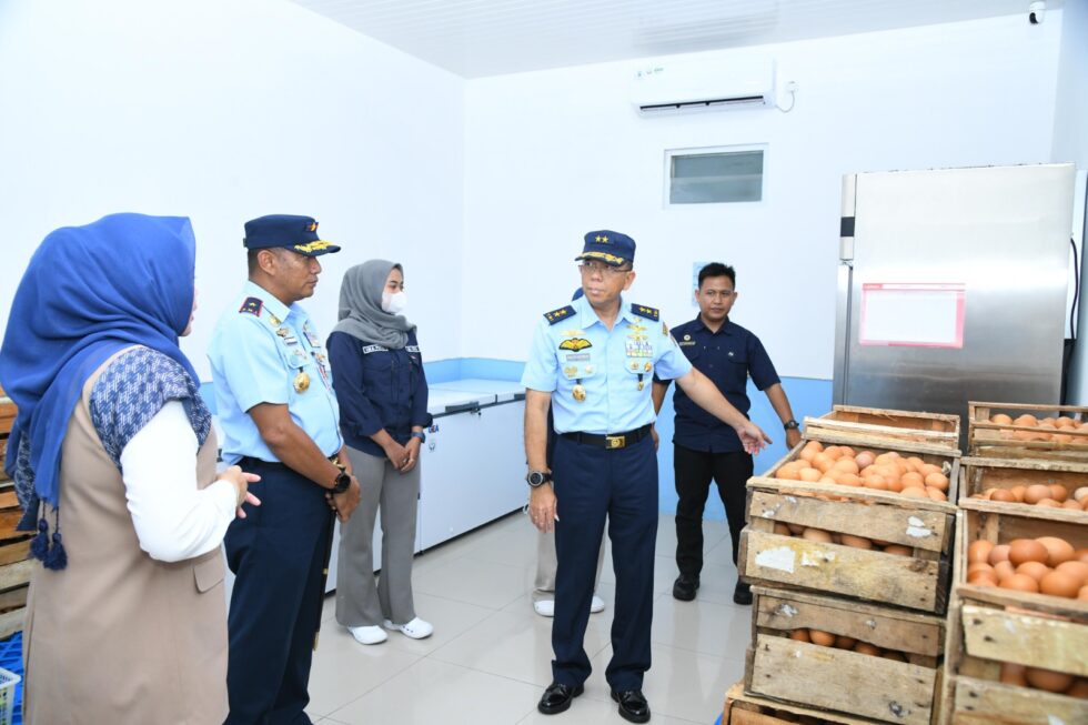 BOGOR, Cakra101.com – Aster Kasau Marsda TNI Palito Sitorus, S.I.P., M.M., melakukan pengawasan dan evaluasi (Wasev) di Dapur SPPG terintegrasi Lanud Atang Sendjaja, Bogor, Selasa (18/11/2025). Wasev dilakukan untuk memastikan fasilitas pemenuhan gizi di satuan tersebut mampu memberikan layanan optimal bagi para penerima manfaat, khususnya siswa sekolah di sekitar wilayah dapur.