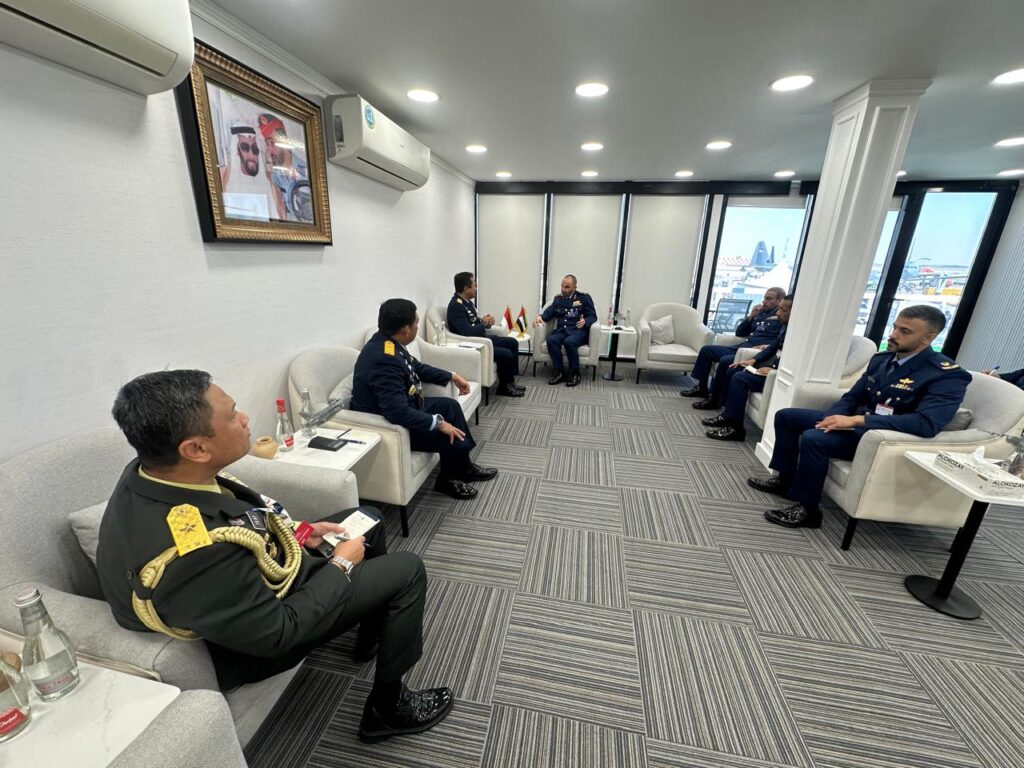 DUBAI, Cakra101.com – Kepala Staf Angkatan Udara (Kasau) Marsekal TNI M. Tonny Harjono, S.E., M.M., melakukan courtesy call dengan Commander of the UAE Air Force and Air Defense (UAE-AFAD), Major General Rashed Mohammed Al-Shamsi, di Dubai, Kamis (20/11/2025).